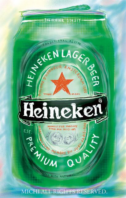 ハイネケンをモチーフにしました。これは、以前のデザインの缶です。今より前面グリーンだったんですね。